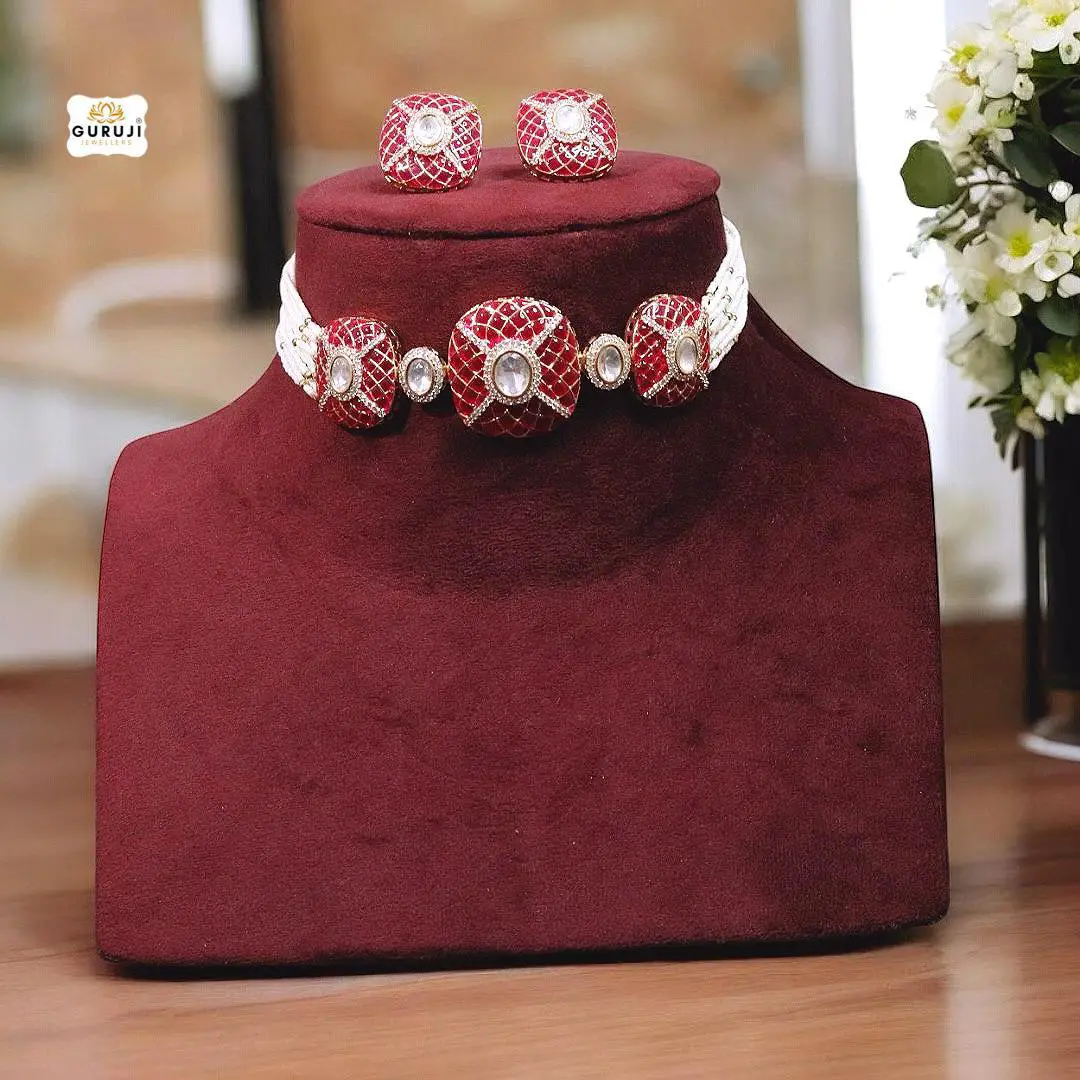 View Products Add to Wishlist Add to Wishlist Necklace SetHandcrafted Beaded Necklace Set with Polki and Moissanite Accents ₹10,599.00