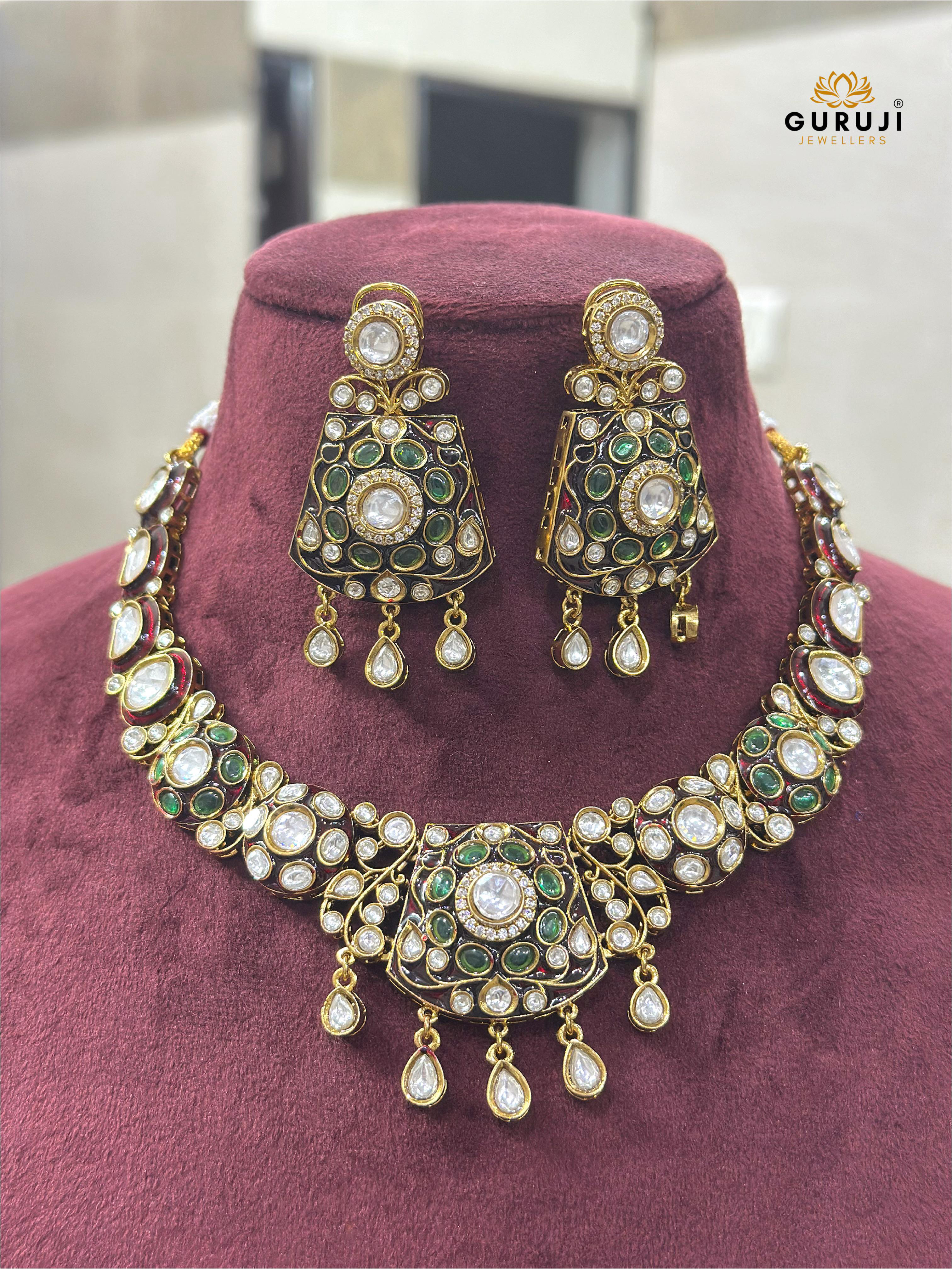 Add to Cart Add to Wishlist Add to Wishlist Necklace SetClassic Kundan, redefined in emerald tones — elegance made to be remembered. ₹4,500.00