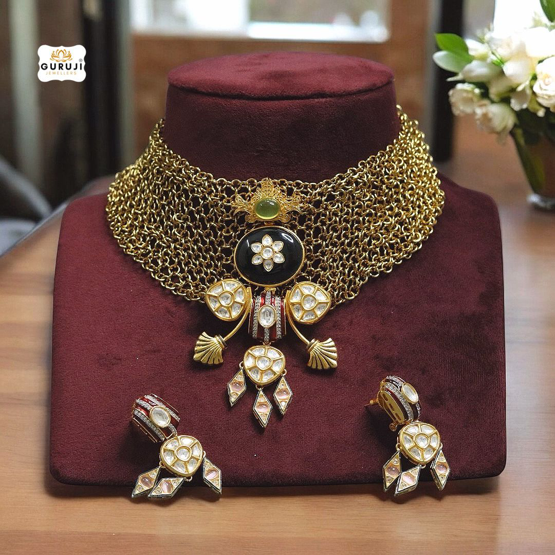 View Products Add to Wishlist Add to Wishlist Necklace SetExquisite Kundan Choker Necklace Set with Carved Stone Drops ₹8,199.00