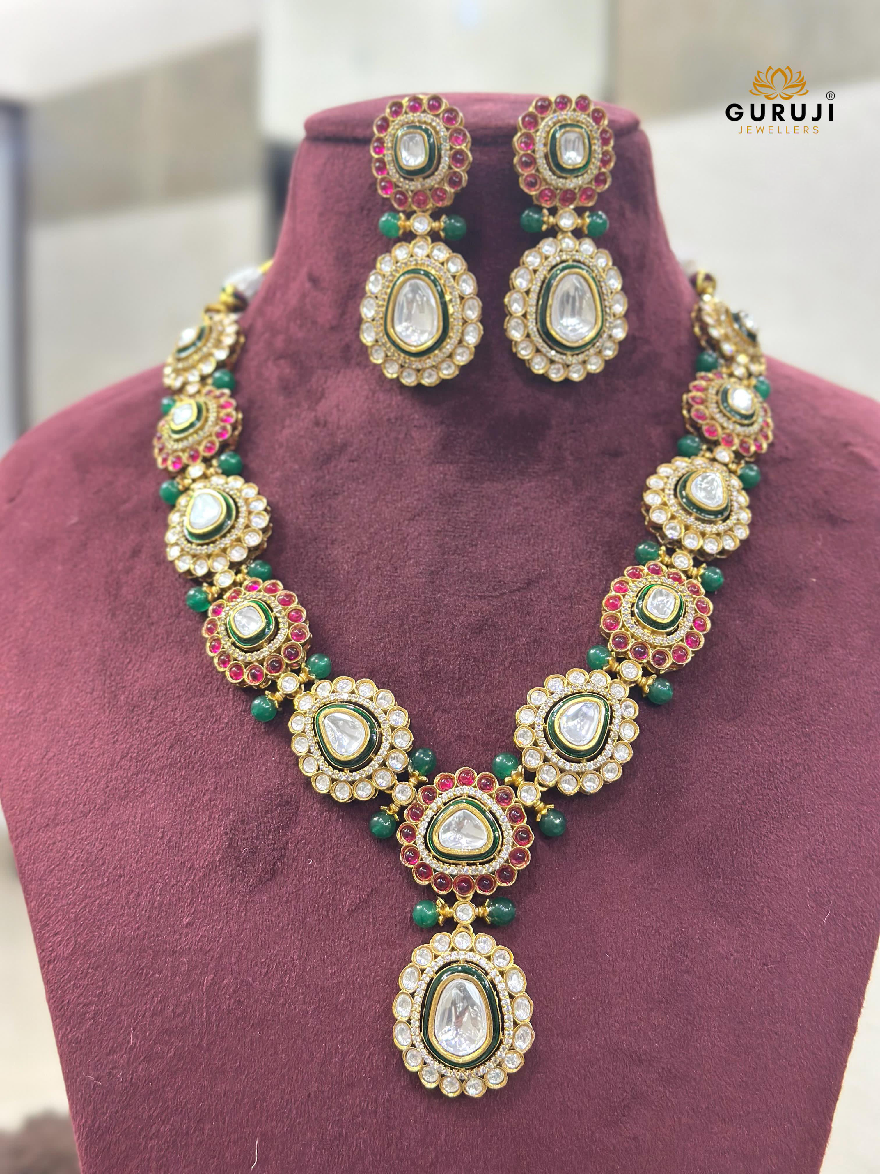 Add to Cart Add to Wishlist Add to Wishlist Necklace SetEmerald Green Stone Necklace Set with Earrings ₹3,499.00