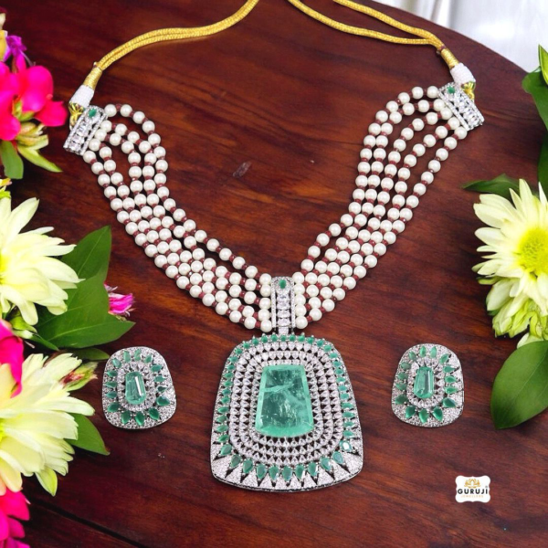 Elevate your style with this exquisitely designed statement necklace, inspired by timeless elegance and contemporary fashion. Crafted with precision, this piece features layers of delicately arranged pearls and a stunning centerpiece framed with intricate detailing. Its bold and luxurious design makes it the perfect accessory for weddings, festive celebrations, or any event where you want to make a lasting impression. Pair it with matching earrings or wear it solo to let it speak for itself.
