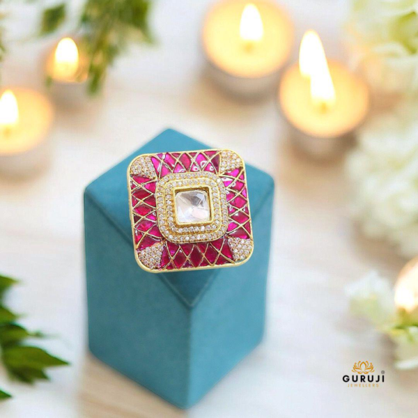 Elevate your jewelry collection with this modern artisan ring, featuring a central square gemstone encased within an intricate lattice design. The double halo of sparkling diamonds enhances its brilliance and makes it a standout piece. Whether worn for a special occasion or as an everyday statement, this ring exudes sophistication and elegance.